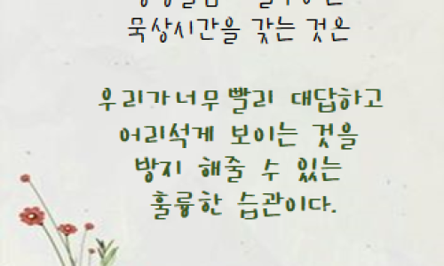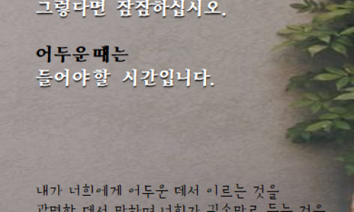 본문 : 49:13-20 이것이 자신을 믿는 어리석은 자들과 그들의 말을 기뻐하며 따르는 자들의 운명이다.그들은 양처럼 스올로 끌려가고, '죽음'이 그들의 목자가 될 것이다. 아침이 오면 정직한 사람은 그들을 다스릴 것이다. 그들의 아름다운 모습은 시들고, 스올이 그들의 거처가 될 것이다.그러나 하나님은 분명히 내 목숨을 건져 주시며, 스올의 세력에서 나를 건져 주실 것이다. (셀라) 어떤 사람이 부자가 되더라도, 그 집의 재산이 늘어나더라도, 너는 스스로 초라해지지 말아라.그도 죽을 때에는 아무것도 가지고 가지 못하며, 그의 재산이 그를 따라 내려가지 못한다.비록 사람이 이 세상에서 흡족하게 살고 성공하여 칭송을 받는다 하여도,그도 마침내 자기 조상에게로 돌아가고 만다. 영원히 빛이 없는 세상으로 돌아가고 만다.사람이 제아무리 위대하다 해도, 죽음을 피할 수는 없으니, 미련한 짐승과 같다.묵상 :. 재물을 가졌다고 자긍하지 맙시다 (13, 18절) 돈이 많으면 알아주는 세상이요, 좋은 집, 좋은 차에 의해 사람을 판단하고 수입에 따라서 그 사람을 인정해주는 사회입니다 그러나, 하나님의 교회는 달라야합니다 만물이 하나님의 것인데 무엇이 더 필요할까요 성령이 충만하고 믿음에 의해 인정되는 교회가 되어야 하지 않을까 싶어요 재물이 영원하다고 착각하지 맙시다. (17절) "저가 죽으매 가져 가는 것이 없고 그 영광이 저를 따라 내려가지 못함이라" 죽기 전에 사용할 수 있었던 재물도 죽으니 그 죽은 육체를 덮어줄 수의 한벌과 그 몸을 묻어줄 한평의 땅밖에 필요가 없습니다 빈손들고 태어나 지금까지 지켜주신 하나님을 감사하며 빈손들고 갈것이 명백하니.. 우리의 삶에 가장 중요한 것이 무엇인지 우리에게 영원한것이 무엇인지.. 돌아보는 지혜를 가져봅시다