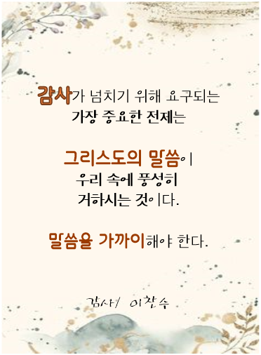 - 다음글1월 19일 정결한 행실의 근원, 정결한 내면 24.01.18
