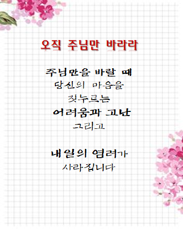 - 다음글1월 27일 타인에 대해서는 관대하고 죄에 대해서는 단호합시다. 24.01.26
