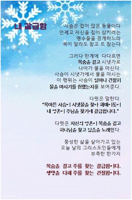 - 다음글12월 29일 만물의 주권자 앞에 서는 의롭고 당당한 삶 23.12.28