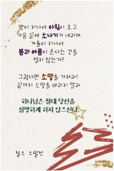 - 이전글12월 20일 친구를 빛나게 하고 양 떼를 보살피는 삶 23.12.19