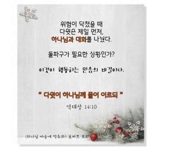 - 다음글12월 26일 의로운 통치자와 백성이 기쁨으로 노래하는 나라 23.12.25