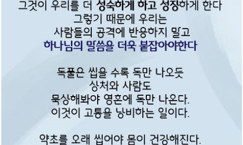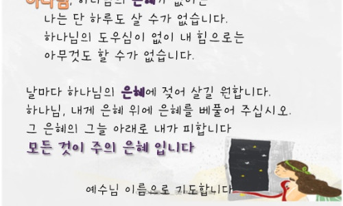 본문 : 에베소서 2:1-10모든 사람이 범죄하여 하나님의 영광에 이를 수 없는 존재가 되었으나 하나님께서는 죄에 대한 형벌을 우리 대신 독생자 예수께 담당케 하셔서 우리를 구원해 주셨습니다. 그 결과 죄범한 영혼은 믿음을 통해서 영생과 평강을 얻게 되었고, 이러한 자들을 하나님께서는 천국 시민으로 삼아주시고 영생을 기업으로 주셨습니다.인간의 본래 상태(1-3) 예수를 만나기 전의 인간은 본래 허물과 죄로 죽었던 자였고이 세상 풍속을 따라 사는 마귀의 종이었다고 바울은 말합니다. 또한 세상 유행에맹종하며 육신의 욕심에 사로잡혀 있는, 저주를 받은 진노의 자녀였다고 합니다. 사실 구원받기 이전의 우리의 상태는 죄로 인하여 하나님과 영적으로 단절되어 심판이외에는 아무것도 기대할 수 없는 상태에 놓여 있었던 것입니다.그리스도와 함께 산 자(4-7) 그런데 우리는 하나님의 사랑과 구속의 은혜로 말미암아 그리스도의 부활과 승천, 영광의 자리에 함께 참여하게 되는 축복을 받게 된 것입니다. 그러나 바울은 하나님의 사랑의 행동을 묘사하기 이전에 다시 한번 인간의비참한 상태를 강조합니다. 하나님의 사랑은 ‘우리가 죄와 허물로 죽었을 때’ 베풀어졌으며, 드디어 하나님은 ‘우리를 그리스도와 함께 살리셨고’, ‘함께 일으키셨고’, ‘함께 앉히셨다’라고 하십니다. 이와 같은 은혜를 베푸신 이유는 하나님의 걸작품인 구속받은 우리를 보시는 하나님의 은혜가 지극히 풍성하시기 때문입니다.믿음으로 인한 구원(8-10) 우리의 구원은 인간의 노력이나 공로로 이루어지는 것이아니라 하나님으로부터 값없이 주어지는 선물로 말미암아 된 것입니다. 또한 구원은얻은 것이지 이룬 것이 아님을 보여줍니다. 그러므로 바울은 “우리는 그의 만드신바라 그리스도 예수 안에서 선한 일을 위하여 지으심을 받은 자”라고 말합니다. 따라서 구원은 전적인 하나님의 은혜요, 선물입니다. 다만 우리에게 요구되는 것은 하나님의 은혜의 선물을 믿음으로 받아들이고 그 은혜의 선물에 합당한 삶을 사는 것으로서, 하나님이 기뻐하시는 일에 힘쓰며 하나님께 영광돌리는 삶을 사는 것입니다(고전10:31-33). http://qt.swim.org/user_utf/life/user_print_web.php ka