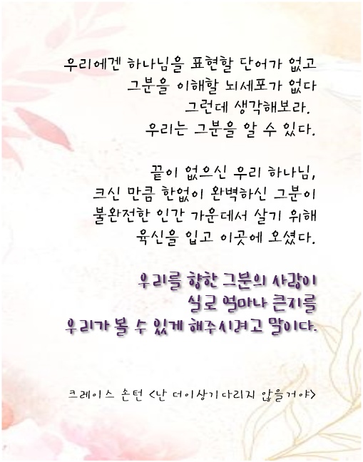 - 이전글7월 3일 아브라함의 후손으로 오신 예수 그리스도 23.07.02