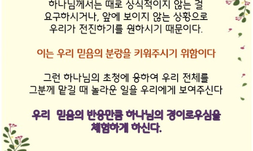 본문 : 디도서 1:1-16 (찬송가 320장 나의 죄를 정케하사)제목: 지도자의 자질과 성도의 영적 분별 ▪ 성경 구절 : (딛 1:1)하나님의 종이요 예수 그리스도의 사도인 나 바울이 사도 된 것은 하나님이 택하신 자들의 믿음과 경건함에 속한 진리의 지식과(딛 1:2)영생의 소망을 위함이라 이 영생은 거짓이 없으신 하나님이 영원 전부터 약속하신 것인데(딛 1:3)자기 때에 자기의 말씀을 전도로 나타내셨으니 이 전도는 우리 구주 하나님이 명하신 대로 내게 맡기신 것이라(딛 1:4)같은 믿음을 따라 나의 참 아들 된 디도에게 편지하노니 하나님 아버지와 그리스도 예수 우리 구주로부터 은혜와 평강이 네게 있을지어다(딛 1:5)○내가 너를 그레데에 남겨 둔 이유는 남은 일을 정리하고 내가 명한 대로 각 성에 장로들을 세우게 하려 함이니(딛 1:6)책망할 것이 없고 한 아내의 남편이며 방탕하다는 비난을 받거나 불순종하는 일이 없는 믿는 자녀를 둔 자라야 할지라(딛 1:7)감독은 하나님의 청지기로서 책망할 것이 없고 제 고집대로 하지 아니하며 급히 분내지 아니하며 술을 즐기지 아니하며 구타하지 아니하며 더러운 이득을 탐하지 아니하며(딛 1:8)오직 나그네를 대접하며 선행을 좋아하며 신중하며 의로우며 거룩하며 절제하며(딛 1:9)미쁜 말씀의 가르침을 그대로 지켜야 하리니 이는 능히 1)바른 교훈으로 권면하고 거슬러 말하는 자들을 책망하게 하려 함이라(딛 1:10)○불순종하고 헛된 말을 하며 속이는 자가 많은 중 할례파 가운데 특히 그러하니(딛 1:11)그들의 입을 막을 것이라 이런 자들이 더러운 이득을 취하려고 마땅하지 아니한 것을 가르쳐 가정들을 온통 무너뜨리는도다(딛 1:12)그레데인 중의 어떤 선지자가 말하되 그레데인들은 항상 거짓말쟁이며 악한 짐승이며 배만 위하는 게으름뱅이라 하니(딛 1:13)이 증언이 참되도다 그러므로 네가 그들을 엄히 꾸짖으라 이는 그들로 하여금 믿음을 2)온전하게 하고(딛 1:14)유대인의 허탄한 이야기와 진리를 배반하는 사람들의 명령을 따르지 않게 하려 함이라(딛 1:15)깨끗한 자들에게는 모든 것이 깨끗하나 더럽고 믿지 아니하는 자들에게는 아무 것도 깨끗한 것이 없고 오직 그들의 마음과 양심이 더러운지라(딛 1:16)그들이 하나님을 시인하나 행위로는 부인하니 가증한 자요 복종하지 아니하는 자요 모든 선한 일을 버리는 자니라 ▣ 디도서 개요 1. 저자 본서의 저자는 바울이다. 본서의 내적 증거(1:1-4)와 디도에 대한 바울의 친밀성(고후2:13;8:23) 및 본서에 나타난 바울적 문체와 사상으로 보아 바울의 저작이 명확하다. 2. 기록연대 및 장소 일반적으로 디모데전서가 기록된 직후에 디도서를 기록되었을 것이라고 말한다. 즉 A.D. 65년경에 마게도냐에서 본서가 기록되었을 것으로 추정된다. 3. 기록목적 바울의 믿음의 아들이며(1:4), 동역자인(고후8:23) 디도를 격려하고 혼란에 빠진 그레데 교회를 바로잡고 올바른 신앙으로 인도하기 위하여 기록되었다. 4. 내용과 주제 디도서는 바울의 또 다른 책인 디모데전서와 내용에 있어서 유사한 점이 많다. 그렇기 때문에 디도서를 가르켜 디모데 전서의 축소판이라고도 말한다. 본서는 목회 서신답게 교회조직, 특히 장로의 자격과 감독직무에 대해 교훈한다. 그리고 신앙의 중요한 교리인 선택(1:1), 영생(1:2;3:7), 그리스도의 신성(1:3-4; 7:13), 영감(2:5), 은혜(2:11), 구원의 보편성(2:11), 재림(2:13), 대속(2:14), 전적부패(3:3), 중생(3:5), 칭의(3:7) 등이다. 그러면서도 신자들의 경건한 삶과 선행에 거듭 교훈한다. 결국 본서는 믿음과 행함, 하나님의 은혜와 성도들의 선행을 아울러 강조하여 준다. ▣ 한줄 묵상 ▲ 디도서 1:9,13절 : 불은 어둠을 밝히고, 책망은 어리석은 사람을 지혜롭게 합니다. ‘책망하다’에 해당하는 헬라어는 “ 빛으로 인도하다”라는 뜻입니다 하나님이 말씀 사역자를 세우신 목적은 바른 교훈으로 성도들을 빛 가운데로 인도하시기 위함입니다. 자기 세계에 갇혀 위로와 격려만 원하는 사람은 어둠 속에서 길을 잃지만, 영원을 사모해 바른 교훈의 책망을 받는 성도는 빛 되신 예수님께 가까이 나아갑니다. 바른 책망은 성도의 믿음을 온전하게 세웁니다. ▲ 삶의 자리에서 주님이 원하시는 모습으로 살아가기 원한다면 지금 누리는 이 모든 것에 대한 감사가 있는지, 또한 그 감사가 내 삶의 섬김과 사랑이 있는지 돌아봐야 겠습니다. ※ 오늘의 기도: 하나님 저를 택하시고 믿음과 지식에 자라게 하시니 감사합니다. 매일 하나님 말씀으로 가르침을 받으며 하나님 성품을 닮아 가게 하소서. 저와 지도자들이 지탄 받지 않도록 흠이 없게 하시고, 늘 말씀에 순종하며 진리로 교회를 세워가게 하소서. http://qt.swim.org/user_utf/life/user_print_web.php ka