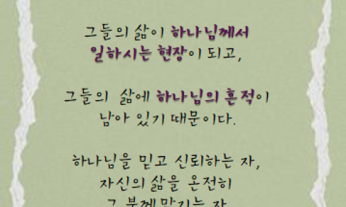 본문 : 느헤미야 3:15-32 (느 3:15)샘문은 미스바 지방을 다스리는 골호세의 아들 살룬이 중수하여 문을 세우고 덮었으며 문짝을 달고 자물쇠와 빗장을 갖추고 또 왕의 동산 근처 셀라 못 가의 성벽을 중수하여 다윗 성에서 내려오는 층계까지 이르렀고 느2:17(느 3:16)그 다음은 벧술 지방 절반을 다스리는 아스북의 아들 느헤미야가 중수하여 다윗의 묘실과 마주 대한 곳에 이르고 또 파서 만든 못을 지나 용사의 집까지 이르렀고 왕하20:20(느 3:17)그 다음은 레위 사람 바니의 아들 르훔이 중수하였고 그 다음은 그일라 지방 절반을 다스리는 하사뱌가 그 지방을 대표하여 중수하였고(느 3:18)그 다음은 그들의 형제들 가운데 그일라 지방 절반을 다스리는 헤나닷의 아들 바왜가 중수하였고(느 3:19)그 다음은 미스바를 다스리는 예수아의 아들 에셀이 한 부분을 중수하여 성 굽이에 있는 군기고 맞은편까지 이르렀고 느3:15, 대하26:9(느 3:20)그 다음은 삽배의 아들 바룩이 한 부분을 힘써 중수하여 성 굽이에서부터 대제사장 엘리아십의 집 문에 이르렀고 전9:10, 느3:1(느 3:21)그 다음은 학고스의 손자 우리야의 아들 므레못이 한 부분을 중수하여 엘리아십의 집 문에서부터 엘리아십의 집 모퉁이에 이르렀고(느 3:22)그 다음은 평지에 사는 제사장들이 중수하였고(느 3:23)그 다음은 베냐민과 핫숩이 자기 집 맞은편 부분을 중수하였고 그 다음은 아나냐의 손자 마아세야의 아들 아사랴가 자기 집에서 가까운 부분을 중수하였고(느 3:24)그 다음은 헤나닷의 아들 빈누이가 한 부분을 중수하되 아사랴의 집에서부터 성 굽이를 지나 성 모퉁이에 이르렀고(느 3:25)우새의 아들 발랄은 성 굽이 맞은편과 왕의 윗 궁에서 내민 망대 맞은편 곧 시위청에서 가까운 부분을 중수하였고 그 다음은 바로스의 아들 브다야가 중수하였고(느 3:26)(그 때에 느디님 사람은 오벨에 거주하여 동쪽 수문과 마주 대한 곳에서부터 내민 망대까지 이르렀느니라)(느 3:27)그 다음은 드고아 사람들이 한 부분을 중수하여 내민 큰 망대와 마주 대한 곳에서부터 오벨 성벽까지 이르렀느니라 느3:5(느 3:28)○마문 위로부터는 제사장들이 각각 자기 집과 마주 대한 부분을 중수하였고 왕하11:16(느 3:29)그 다음은 임멜의 아들 사독이 자기 집과 마주 대한 부분을 중수하였고 그 다음은 동문지기 스가냐의 아들 스마야가 중수하였고(느 3:30)그 다음은 셀레먀의 아들 하나냐와 살랍의 여섯째 아들 하눈이 한 부분을 중수하였고 그 다음은 베레갸의 아들 므술람이 자기의 방과 마주 대한 부분을 중수하였고(느 3:31)그 다음은 금장색 말기야가 함밉갓 문과 마주 대한 부분을 중수하여 느디님 사람과 상인들의 집에서부터 성 모퉁이 성루에 이르렀고(느 3:32)성 모퉁이 성루에서 양문까지는 금장색과 상인들이 중수하였느니라본문 요약 : 제사장, 레위 사람, 여자, 고위 관리, 금장잭, 상인 등 신분과 직업에 상관없이 많은 백성이 공시에 참여합니다. 그들은 대체로 자기 집에서 가까운 부분을 맡아 중수 합니다. 성벽 중수 공사는 샘문, 수문, 마문, 동움 함밉갓문을 거쳐 공사가 처음 시작되었던 양문에서 끝납니다.