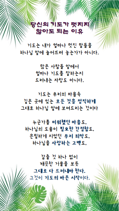 - 다음글9월 2일 하나님의 선한 손길과 기도 응답 24.09.02
