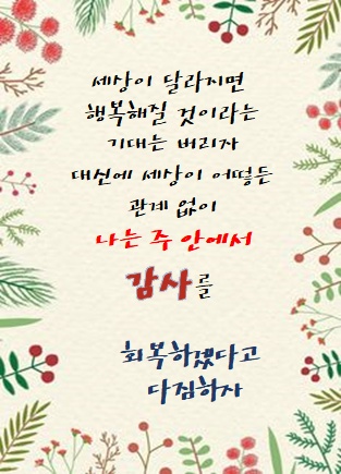 ※ 오늘의 기도: 하나님, 신실한 사람들을 보내셔서 가장 힘든 시간을 위로하시는 사랑이 얼마나 감격스러운지요. 자신을 믿고 인생을 살려는 미렴함을 속히 내려놓고 모든 일을 말씀에 비추어 생각하며 하나님의 길을 가게 하소서. 서로의 필요를 보며 힘을 다해 돕고, 나누고, 격려하게 하소서.