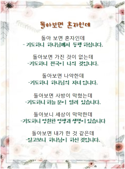 또한 각자의 길을 걸어가면서도 서로 기도하며 축복해 줄 수 있는 지혜를 주시니 감사합니다.
