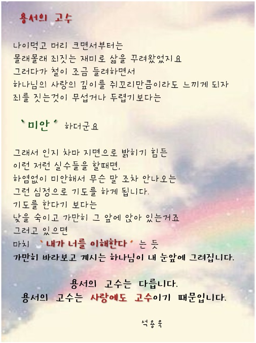 이로써 제 남은 생애가 주님과 온전히 연합하는 삶을 살게 하소서