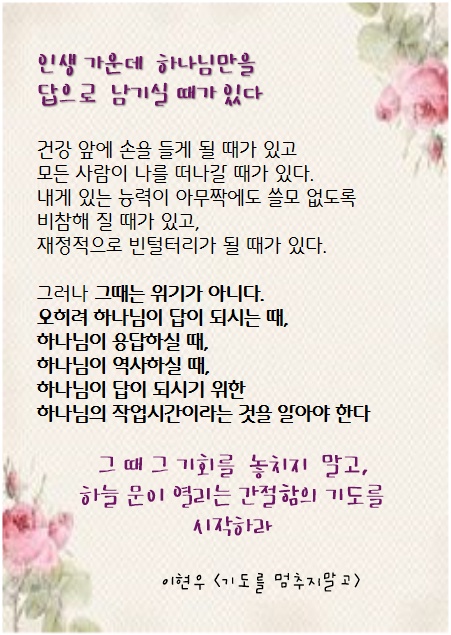 오늘의 기도: 말씀으로 뜻을 나타나시는 하나님, 불순종으로 말씀의 통로를 막는 어리석은 인생이 되지 않게 하소서,