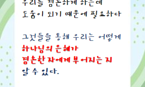 본문 : 왕하 15: 1-12 본문은 남유다의 왕들 중에서 가장 오랜 기간 동안 통치한 아사랴의 행적에 관해기록하고 있습니다. 그는 52년간 유다를 통치하였습니다. 그의 행적은 역대하 26장에 더욱 상세히 기록되어 있습니다. 아사랴(1-4) 아사랴는 구약성경에서 ‘웃시야’라는 이름으로 더 잘 알려져 있습니다(왕하15:13,30;대하26장;사1:1;호1:1;암1:1;슥14:5). 통치 초기에 그는 선지자스가랴의 도움으로 하나님 보시기에 정직히 행하였는데 그가 여호와 하나님을 찾고구하는 동안에는 하나님께서 그를 형통케 하셨습니다. 아사랴는 유다의 가장 영향력있는 왕 중의 한 사람이었습니다. 그는 엘랏(왕하14:22)까지 남쪽과 동쪽으로 영토를 확장하여 암몬 족속이 그에게 조공을 바치게 했으며 블레셋을 쳐서 서쪽까지 영토를 넓혔습니다. 그는 예루살렘과 유다의 다른 지역을 요새화했고(대하26:9-10,15)군대를 재조직하였습니다(대하26:11-14). 이처럼 아사랴는 정치, 경제, 군대 등 여러 방면에서 뛰어난 능력을 발휘하였습니다. 그러나 그의 이러한 능력은 아사랴 스스로가 뛰어났다기보다는 하나님을 의지함으로 하나님께서 그와 함께 하셨기 때문입니다. 문둥병에 걸린 아사랴(5) 역대하의 저자는 아사랴가 문둥병에 걸리게 된 이유에대하여 자세히 기록하고 있습니다(대하26:16-21). 아사랴는 그의 이름이 널리 퍼지고 나라가 강성하여지자 마음이 교만하여졌습니다. 그는 제사장만이 할 수 있는 성전에서 향단에 분향하는 일을 자신이 하고자 했는데 말리는 제사장에게 화를 내는순간 이마에 문둥병이 발하였습니다. 이스라엘 사회에서 문둥병에 걸린 자는 사회로부터 격리되기 때문에 아사랴는 남은 여생을 별궁에서 보내야만 했습니다. 아사랴의 죽음(6-7) 역대기에 따르면 아사랴는 문둥병에 걸려 죽었기 때문에 선대왕들처럼 열조의 묘실에 묻힌 것이 아니라 인접한 묘실에 장사되었습니다. “웃시야가 그 열조와 함께 자매 저는 문둥이라 하여 열왕의 묘실에 접한 땅 곧 그 열조의곁에 장사하니라 그 아들 요담이 대신하여 왕이 되니라”(대하26:23). 이처럼 한 나라의 왕이라 할지라도 하나님 앞에서 무례히 행하는 자는 진노의 형벌을 면할 수 없습니다. 그러므로 우리 그리스도인들은 하나님의 은혜를 체험하면 할수록 더욱 더겸손히 행해야 합니다. 왜냐하면 하나님께서는 교만한 자를 물리치시고 겸손한 자에게 은혜를 주시는 분이기 때문입니다(약4:6) 스가랴(8-11) 스가랴는 유다 왕 아사랴 38년(B.C.753년)에 여로보암 2세의 뒤를이어 북이스라엘의 제14대 왕위에 올랐으나 단 6개월 동안 왕위에 머물렀습니다. 그는 이스라엘의 모든 선왕들이 그랬던 것과 같이 여로보암 1세가 단과 벧엘에 세워둔금송아지 숭배를 계속했습니다. 예후 왕조(12) 오므리 왕조에 이어 예후 왕조를 세운 북이스라엘의 제10대 왕 예후는 이스라엘 중에서 우상 바알과 바알 선지자들을 제거하는 등 여호와 보시기에선한 일을 행하였습니다. 그러나 여로보암 1세가 세운 금송아지만은 여전히 없애지아니하였으므로 하나님께로부터 제한적인 복을 받았습니다. 열왕기하 10:30을 보면여호와께서는 예후에게 “네가 나 보기에 정직한 일을 행하되 잘 행하여 내 마음에있는 대로 아합 집에 다 행하였은즉 네 자손이 이스라엘 왕위를 이어 사대를 지나리라”라고 하셨습니다. 그리고 하나님의 말씀대로 예후의 후손인 여호아하스, 요아스, 여로보암 2세, 스가랴가 이스라엘을 통치하는 것을 끝으로 예후 왕조는 막을 내렸습니다. 북이스라엘의 200년 역사에서 예후 왕조는 거의 반에 가까운 95년 간을지속해 왔는데 이 스가랴의 죽음으로 예후 왕조는 끝이 났습니다.