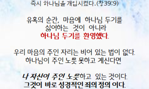 너희는 유혹의 욕심을 따라 썩어져 가는 구습을 따르는 옛 사람을 벗어 버리고오직 너희의 심령이 새롭게 되어 하나님을 따라 의와 진리의 거룩함으로 지으심을 받은 새 사람을 입으라. (엡 4:22-24) You were taught, with regard to your former way of life, to put off your old self, which is being corrupted by its deceitful desires; to be made new in the attitude of your minds; and to put on the new self, created to be like God in true righteousness and holiness.