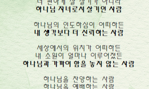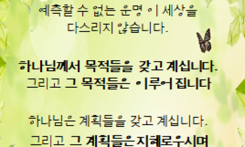 예수를 너희가 보지 못하였으나 사랑하는도다 이제도 보지 못하나 믿고 말할 수 없는 영광스러운 즐거움으로 기뻐하니 믿음의 결국 곧 영혼의 구원을 받음이라 (벧전 1:8-9) Whom having not seen, ye love; in whom, though now ye see him not, yet believing, ye rejoice with joy unspeakable and full of glory: Receiving the end of your faith, even the salvation of your souls.