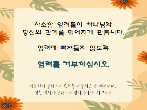 • 적용: 우리 삶에서 시험과 유혹이 올지라도, 하나님의 승리를 믿고 흔들리지 않도록 합시다.