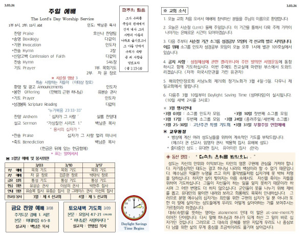 03/03/24 교회 주보 페이지 정보 작성자 아름다운동산교회 댓글 0건 조회 1,879회 작성일 24-03-02 07:47 목록 본문 03/03/24 이전글03/10/24 교회 주보 24.03.09 다음글2/25/24 교회주보 24.02.24 댓글 0 댓글목록 등록된 댓글이 없습니다. 목록
