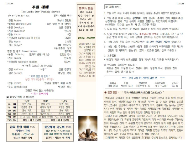 11/12/23 교회 주보 페이지 정보 작성자 아름다운동산교회 댓글 0건 조회 2,071회 작성일 23-11-11 08:09 목록 본문 11/12/23 이전글11/19/23 교회주보 23.11.18 다음글11/5/23 교회 주보 23.11.04 댓글 0 댓글목록 등록된 댓글이 없습니다. 목록