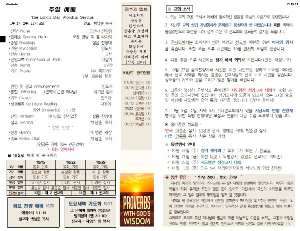 교회 주보 10/15/23 페이지 정보 작성자 아름다운동산교회 댓글 0건 조회 2,295회 작성일 23-10-14 06:57 목록 본문 10/15/23 이전글10/22/23 교회 주보 23.10.21 다음글10-08-23 교회 주보 23.10.07 댓글 0 댓글목록 등록된 댓글이 없습니다. 목록