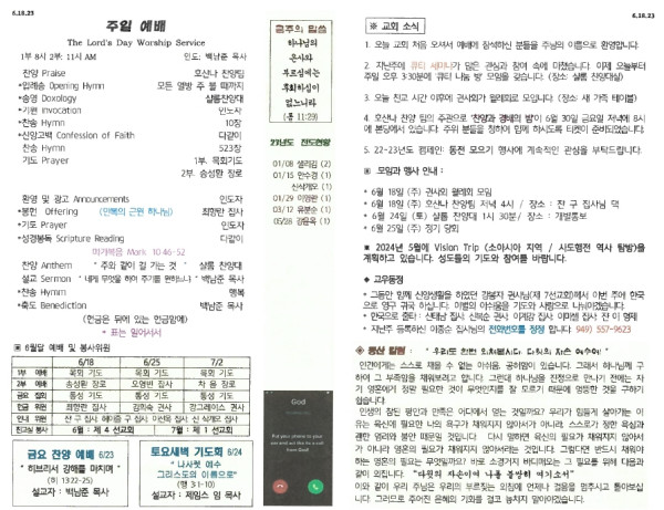 6/18/23 교회 주보 페이지 정보 작성자 아름다운동산교회 댓글 0건 조회 2,525회 작성일 23-06-17 07:54 목록 본문 6/18/23 이전글06/25/23 교회 주보 23.06.24 다음글06/11/23 교회 주보 23.06.10 댓글 0 댓글목록 등록된 댓글이 없습니다. 목록