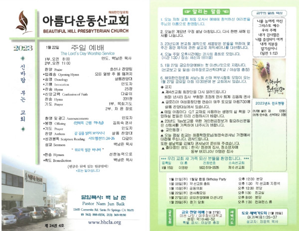 01-22-23 교회 주보 페이지 정보 작성자 아름다운동산교회 댓글 0건 조회 2,065회 작성일 23-01-21 08:40 목록 본문 01/22/23 이전글01/29/23 교회 주보 23.01.28 다음글01/15/23 교회 주보 23.01.14 댓글 0 댓글목록 등록된 댓글이 없습니다. 목록