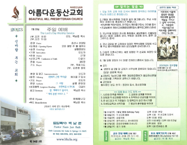 01/29/23 교회 주보 페이지 정보 작성자 아름다운동산교회 댓글 0건 조회 2,345회 작성일 23-01-28 09:08 목록 본문 01/29/23 이전글02/05/23 교회 주보 23.02.04 다음글01-22-23 교회 주보 23.01.21 댓글 0 댓글목록 등록된 댓글이 없습니다. 목록