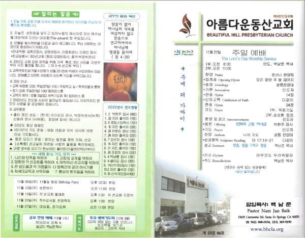 11/27 주일 주보 페이지 정보 작성자 아름다운동산교회 댓글 0건 조회 2,346회 작성일 22-11-27 09:39 목록 본문 22.11.27 주일 주보 이전글12/04/22 교회 주보 22.12.03 다음글11-20-22 교회 주보 22.11.19 댓글 0 댓글목록 등록된 댓글이 없습니다. 목록