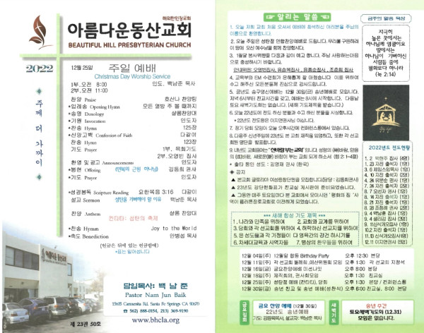12/25/22 교회 주보 페이지 정보 작성자 아름다운동산교회 댓글 0건 조회 2,192회 작성일 22-12-24 09:44 목록 본문 12/25/22 이전글1월 1일 23년도 22.12.31 다음글12/18/22 교회 주보 22.12.17 댓글 0 댓글목록 등록된 댓글이 없습니다. 목록