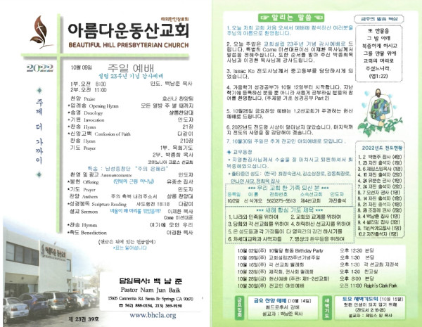10-09-22 교회 주보 페이지 정보 작성자 아름다운동산교회 댓글 0건 조회 2,438회 작성일 22-10-08 08:05 목록 본문 10-09-22 이전글10/16/22 교회 주보 22.10.15 다음글10-02-22 22.10.01 댓글 0 댓글목록 등록된 댓글이 없습니다. 목록