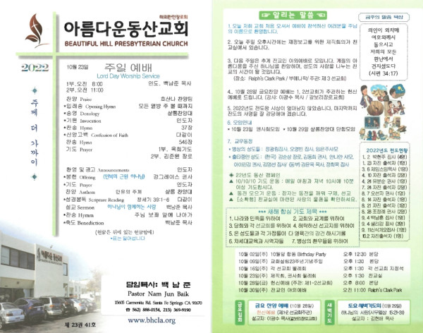 10/23/22 교회 주보 페이지 정보 작성자 아름다운동산교회 댓글 0건 조회 2,225회 작성일 22-10-22 08:32 목록 본문 10/23/22 이전글10-30-22 교회 주보 22.10.29 다음글10/16/22 교회 주보 22.10.15 댓글 0 댓글목록 등록된 댓글이 없습니다. 목록