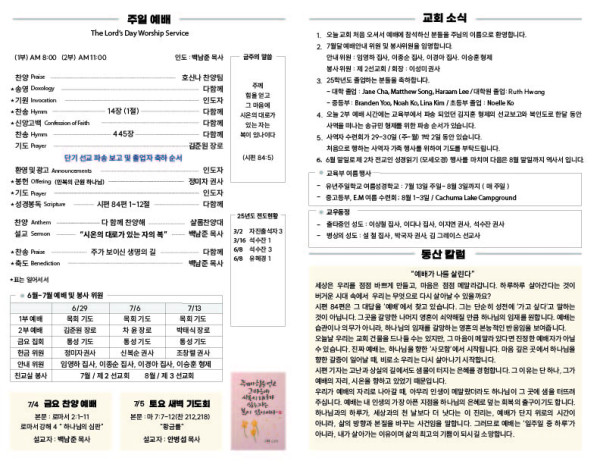 06/29/25 교회 주보 페이지 정보 작성자 아름다운동산교회 댓글 0건 조회 576회 작성일 25-06-28 07:15 목록 본문 06/29/25 이전글07/06/25 교회 주보 25.07.05 다음글06/22/25 교회 주보 25.06.28 댓글 0 댓글목록 등록된 댓글이 없습니다. 목록