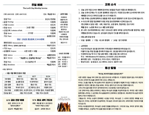 08/10/25 교회 주보 페이지 정보 작성자 아름다운동산교회 댓글 0건 조회 409회 작성일 25-08-09 06:44 목록 본문 08/10/25 이전글08/17/25 교회 주보 25.08.16 다음글08/03/25 교회 주보 25.08.02 댓글 0 댓글목록 등록된 댓글이 없습니다. 목록