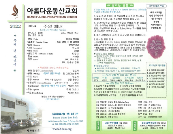 08/14/22 교회 주보 페이지 정보 작성자 아름다운동산교회 댓글 0건 조회 2,666회 작성일 22-08-13 09:35 목록 본문 08/14/22 이전글08/21/22 교회 주보 22.08.20 다음글08/07/22 교회 주보 22.08.07 댓글 0 댓글목록 등록된 댓글이 없습니다. 목록