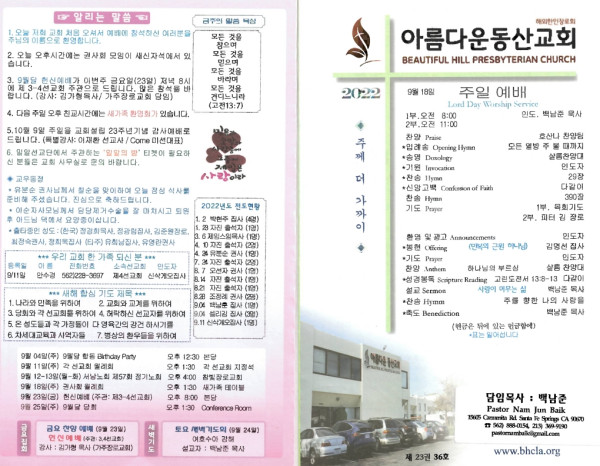 09/18/22 페이지 정보 작성자 아름다운동산교회 댓글 0건 조회 2,602회 작성일 22-09-18 12:49 목록 본문 09/18/22 이전글09/25/22 교회 주보 22.09.24 다음글09/11/22 교회 주보 22.09.10 댓글 0 댓글목록 등록된 댓글이 없습니다. 목록