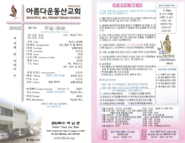 05/15/22 교회 주보 페이지 정보 작성자 아름다운동산교회 댓글 0건 조회 2,589회 작성일 22-05-14 09:15 목록 본문 05/15/22 이전글05/22/22 22.05.22 다음글05/08/22 교회 주보 22.05.07 댓글 0 댓글목록 등록된 댓글이 없습니다. 목록