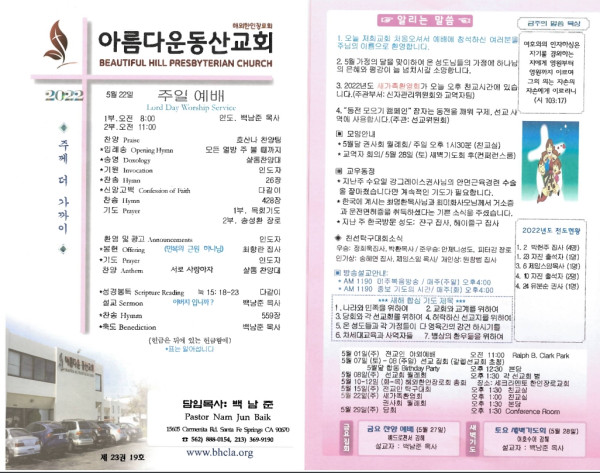 05/22/22 페이지 정보 작성자 아름다운동산교회 댓글 0건 조회 2,237회 작성일 22-05-22 08:59 목록 본문 05/22/22 이전글05/29/22 22.05.29 다음글05/15/22 교회 주보 22.05.14 댓글 0 댓글목록 등록된 댓글이 없습니다. 목록