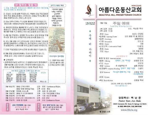 03/13/22 교회 주보 페이지 정보 작성자 아름다운동산교회 댓글 0건 조회 2,915회 작성일 22-03-12 16:24 목록 본문 03/13/22 이전글03/20/22 교회 주보 22.03.19 다음글03/06/22 교회 주보 22.03.05 댓글 0 댓글목록 등록된 댓글이 없습니다. 목록