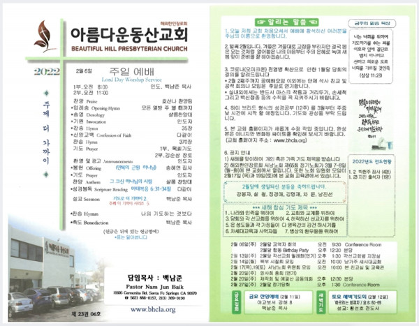 2/6/22 교회 주보 페이지 정보 작성자 아름다운동산교회 댓글 0건 조회 2,590회 작성일 22-02-05 08:33 목록 본문 02/06/22 이전글02/13/22 교회 주보 22.02.12 다음글1/30/22 주보 22.02.04 댓글 0 댓글목록 등록된 댓글이 없습니다. 목록
