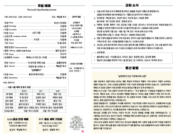 05/25/25 교회 주보 페이지 정보 작성자 아름다운동산교회 댓글 0건 조회 639회 작성일 25-05-24 06:41 목록 본문 05/25/25 이전글06/01/25 교회 주보 25.05.31 다음글05/18/25 교회 주보 25.05.17 댓글 0 댓글목록 등록된 댓글이 없습니다. 목록