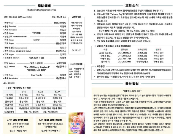 06/15/25 교회 주보 페이지 정보 작성자 아름다운동산교회 댓글 0건 조회 590회 작성일 25-06-14 06:37 목록 본문 06/15/25 이전글06/22/25 교회 주보 25.06.28 다음글06/08/25 교회 주보 25.06.07 댓글 0 댓글목록 등록된 댓글이 없습니다. 목록