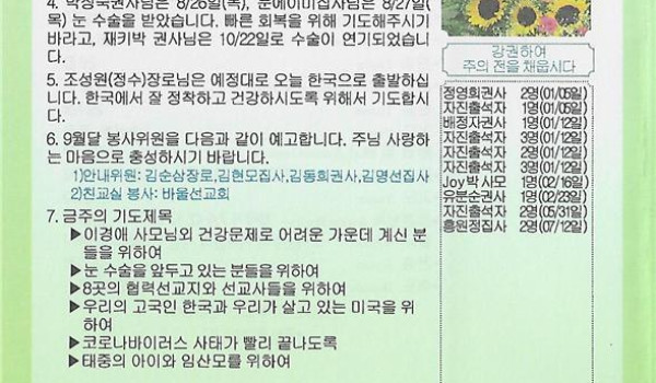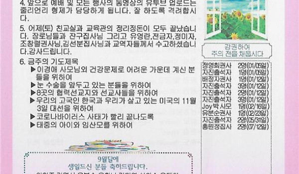 09/06/20 주일 교회 소식