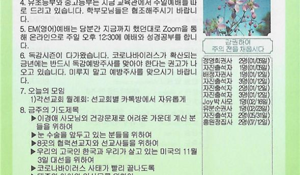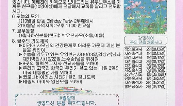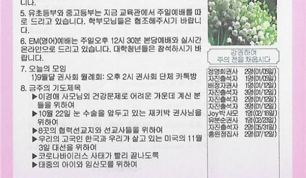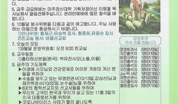 10/04/20 주일 교회 소식