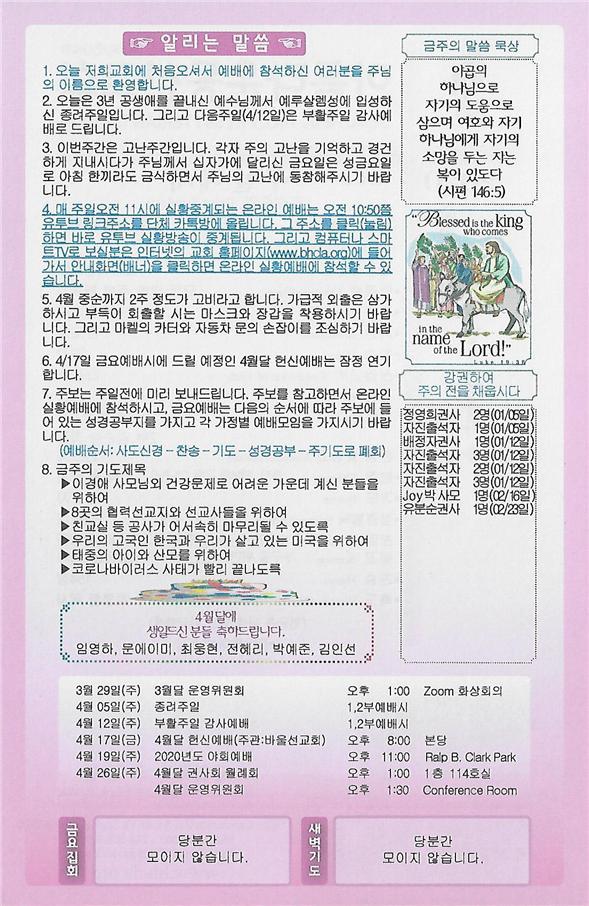 04/05/20 주일 교회 소식 페이지 정보 작성자 댓글 0건 조회 2,661회 작성일 20-04-03 19:03 목록 본문 이전글04/12/20 주일 교회 소식 20.04.10 다음글03/29/20 주일 교회 소식 20.03.27 댓글 0 댓글목록 등록된 댓글이 없습니다. 목록