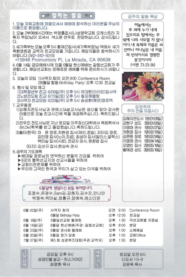 06/02/19 주일 교회 소식 페이지 정보 작성자 댓글 0건 조회 2,888회 작성일 19-06-01 08:56 목록 본문 이전글06/09/19 주일 교회 소식 19.06.08 다음글05/26-19 주일 교회 소식 19.05.25 댓글 0 댓글목록 등록된 댓글이 없습니다. 목록