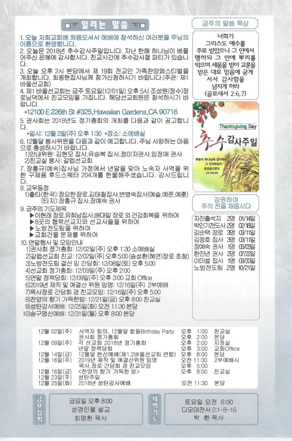 11/25/18 주일 교회 소식 페이지 정보 작성자 댓글 0건 조회 2,770회 작성일 18-11-24 08:43 목록 본문 이전글12/02/18 주일 교회 소식 18.12.01 다음글11/18/18 주일 교회 소식 18.11.17 댓글 0 댓글목록 등록된 댓글이 없습니다. 목록