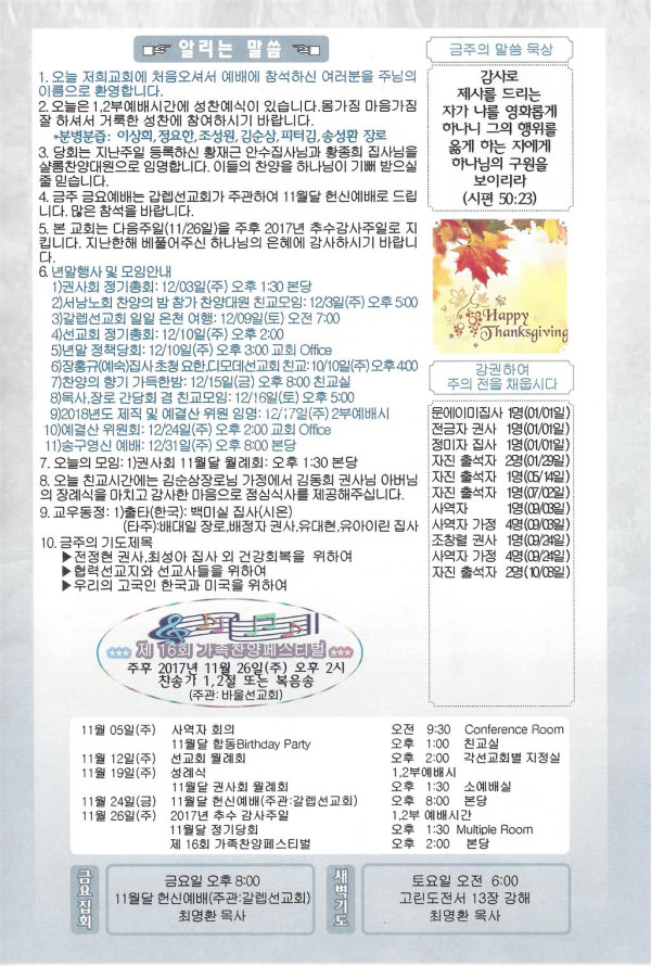 11/19/17 주일 교회 소식 페이지 정보 작성자 댓글 0건 조회 2,765회 작성일 17-11-18 11:51 목록 본문 이전글11/26/17 주일 교회 소식 17.11.25 다음글11/12/17일 주일 교회소식 17.11.11 댓글 0 댓글목록 등록된 댓글이 없습니다. 목록