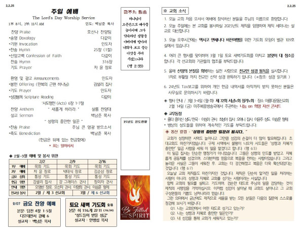 02/02/25 교회 주보 페이지 정보 작성자 아름다운동산교회 댓글 0건 조회 1,026회 작성일 25-02-01 07:53 목록 본문 02/02/25 이전글02/09/25 교회 주보 25.02.08 다음글01/26/25 교회 주보 25.01.25 댓글 0 댓글목록 등록된 댓글이 없습니다. 목록