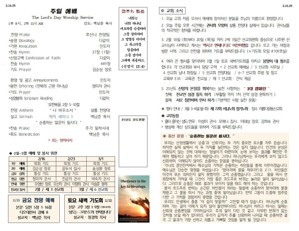 02/16/25 교회 주보 페이지 정보 작성자 아름다운동산교회 댓글 0건 조회 1,367회 작성일 25-02-15 07:55 목록 본문 02/16/25 이전글02/23/25 교회 주보 25.02.22 다음글02/09/25 교회 주보 25.02.08 댓글 0 댓글목록 등록된 댓글이 없습니다. 목록