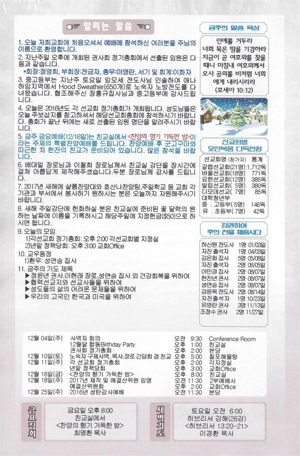 12/11/16 주일 교회 소식 페이지 정보 작성자 댓글 0건 조회 2,407회 작성일 16-12-10 15:43 목록 본문 이전글12/18/16 주일 교회 소식 16.12.17 다음글12/04/16 주일 교회 소식 16.12.03 댓글 0 댓글목록 등록된 댓글이 없습니다. 목록