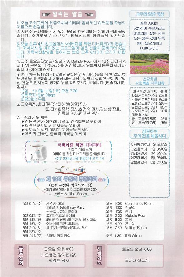 - 다음글05/08/16 주일 교회 소식 16.05.07