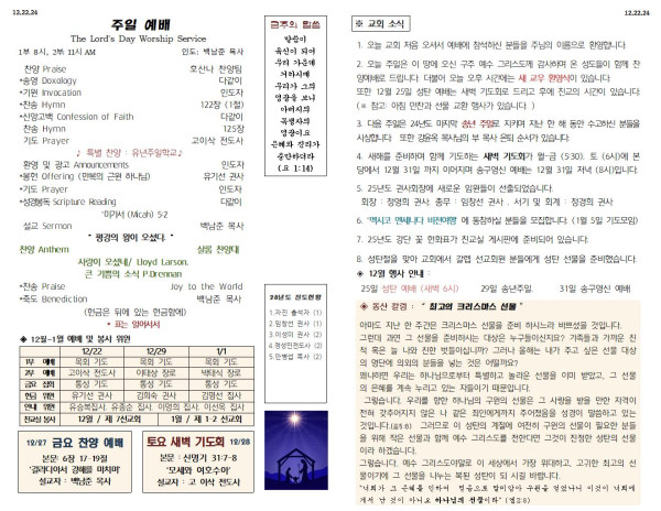 12/22/24 교회 주보 페이지 정보 작성자 아름다운동산교회 댓글 0건 조회 1,462회 작성일 24-12-21 07:54 목록 본문 12/22/24 이전글12/29/24 교회 주보 24.12.28 다음글12/15/24 교회 주보 24.12.14 댓글 0 댓글목록 등록된 댓글이 없습니다. 목록